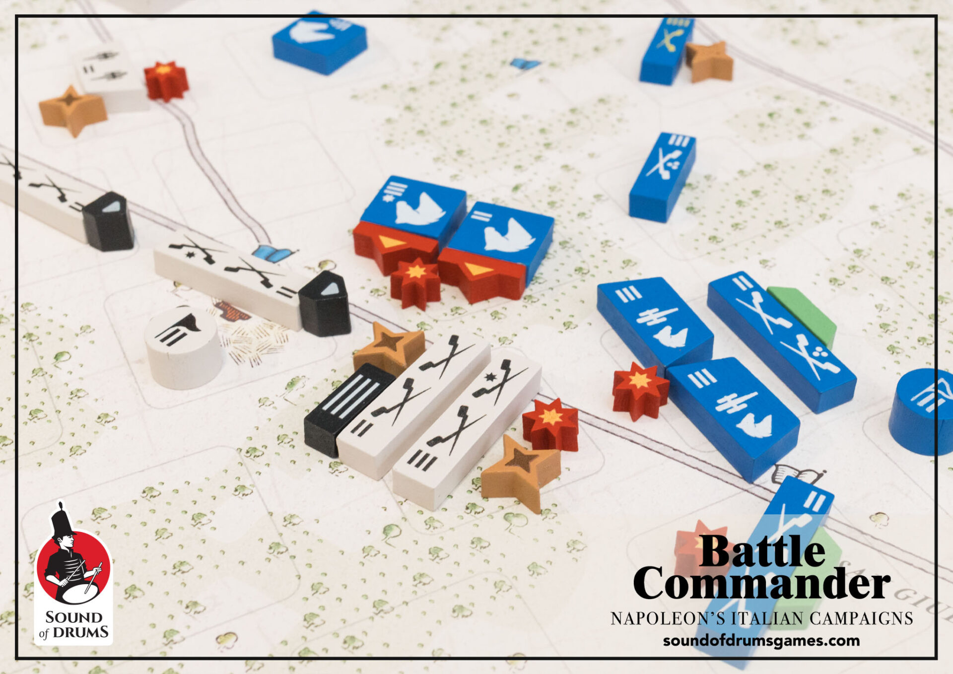 - Jugabilidad atractiva: Battle Commander utiliza un sistema de activación por extracción de cubos que mantiene el juego en movimiento rápidamente y crea situaciones impredecibles. Tendrás que tomar decisiones difíciles sobre la marcha, como un auténtico general napoleónico. El juego también incluye cartas de eventos que pueden cambiar el rumbo de la batalla, añadiendo un elemento de sorpresa y emoción.