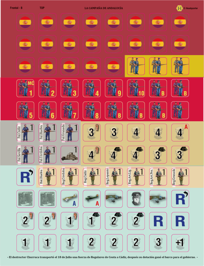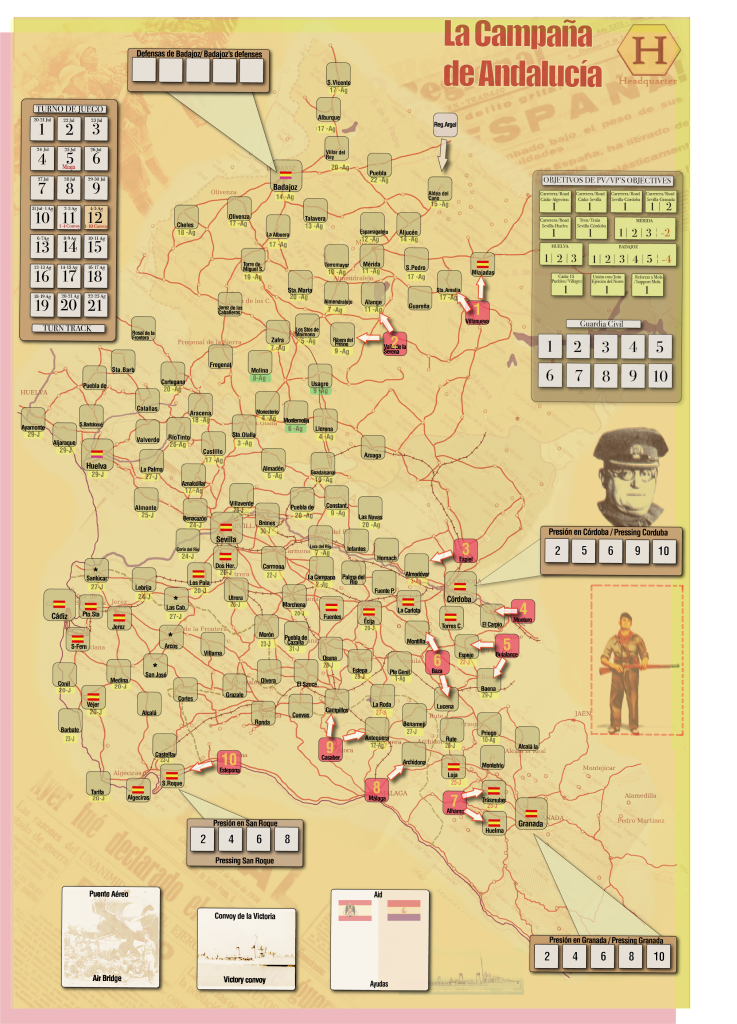 Secuencia de juego: El juego consta de 21 turnos de juego que comienzan en el turno 1 (18 de julio de 1936) y terminan en el turno 21 (22-23 de agosto de 1936).